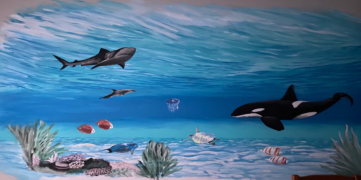 Wilt u ook zo'n mooi vogeltje op de muur (buitenmuur ook mogelijk!)? Zelfs goed mogelijk op grovere achtergrond! Grote muurschilderingen in praktijkruimtes, kinderkamers doe ik ook. Graag bespreek ik met u uw wensen!